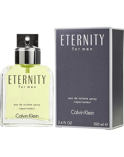 Eternity For Men de Calvin Klein es una fragancia de la familia olfativa Aromática Fougère para Hombres. Eternity For Men se lanzó en 1990. La Nariz detrás de esta fragrancia es Carlos Benaim. Las Notas de Salida son lavanda, mandarina, bergamota y limón (lima ácida); las Notas de Corazón son cilantro, azucena, flor de azahar del naranjo, bayas de enebro, albahaca, jazmín, salvia, lirio de los valles (muguete) y geranio; las Notas de Fondo son sándalo, ámbar, almizcle, vetiver y palo de rosa de Brasil.